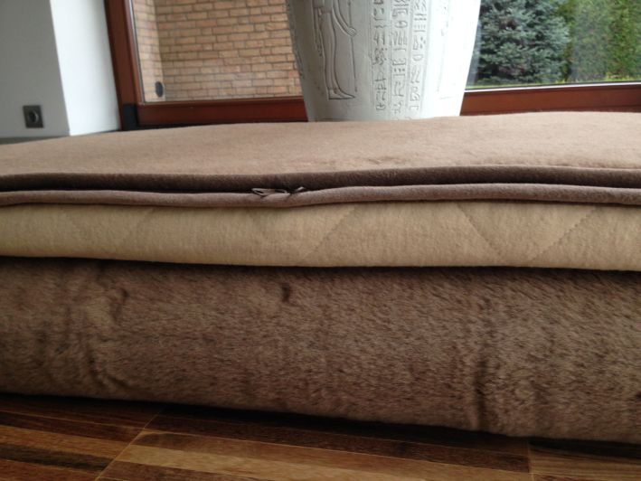 Materac wełniany – jednostronnie wełniany wypełnienie lateksowe 4-5cm grubości idealny materac nawierzchniowy na kanapy wersalki 4 gumki na rogach dodatkowo zamki na około materaca umożliwiające łatwe pranie pokrowca wełnianego.
